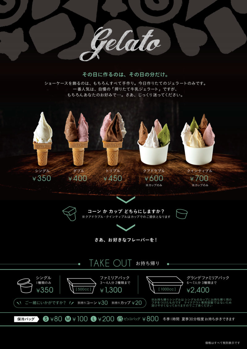 持ち帰りが出来る、新感覚ジェラートパフェもぜひ一度ご賞味ください。